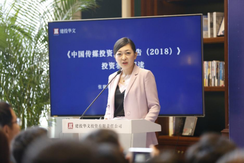 期间,建投华文研究官张璐璐代表报告主编方对中国文化传媒产业投资看点进行了解读。她指出,党的十九大明确了文化传媒产业新方位,文化自信凸显其核心地位,当前中国文化传媒产业发展整体保持高速增长,数字媒体加速发展,产业交叉融合态势崛起,文化产业机制体制建设日趋完善。2018年,中国文化传媒产业将呈现四种趋势,一是热门垂直细分领域迎来发展良机,文化传媒产业将成为重要经济增长驱动力;二是产业专项支持力度逐渐增大,政策红利加大产业发展空间;三是“文化+”带来文化传媒产业新蓝海,新驱动引擎崭露头角;四是科技赋能文化传媒产业新发展,新技术应用产生新增长点。