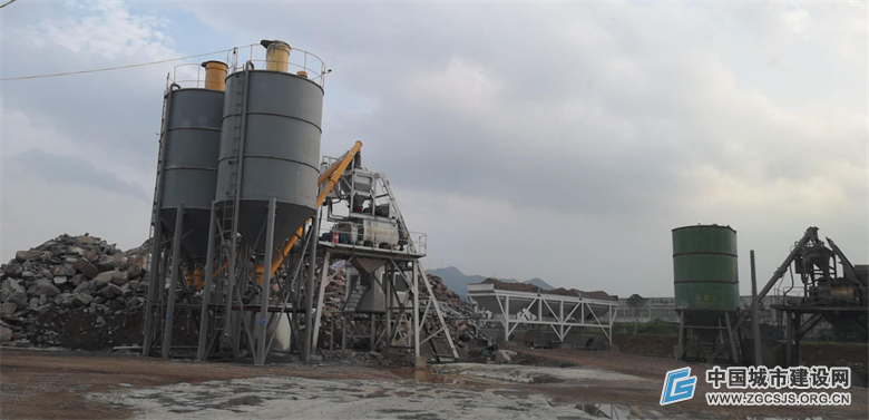 随后,记者又赶往李宅镇登干村附近的一个搅拌站,树丛中竖立着两个水泥罐子,一座简单的搅拌楼,没有任何的环保设施,也正热火朝天地生产着。