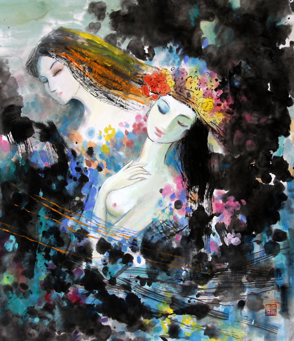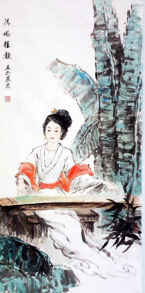画家能接纳新亊物,积极学习新课题,突破传统,融进现代风格,突破传统绳索,将人物画的魅力和传统艺术的美感很好融合在一起。画作藴含着画家深厚的文化底蕴,为国画人物画开辟了新面貌。