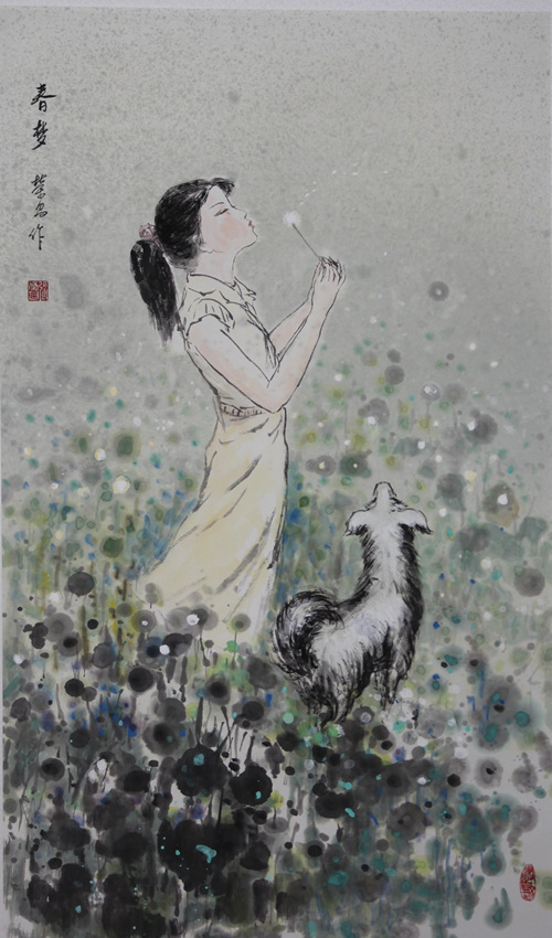 画家采用写意兼工的笔法,艺术脉膊感觉強,其作品笔法老道,学为所用,将仕女人物形态各异的神情,栩栩如生地刻画出来,人物形象精准而生动,这与画家的诗书画知识沉淀分不开,让人感受到画家的深遂与博学。