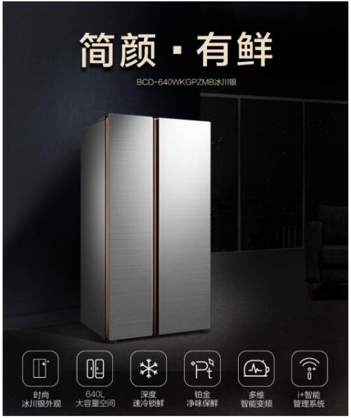 其中,2018年全新上市的美的微晶冰箱BCD-640WKGPZMB,典雅的“冰川银”面板将金属拉丝的质感运用于通透的玻璃材质之中,与现代简约主义家居风格相得益彰,深邃细腻; 401L冷藏加239L冷冻的640L超大箱内容量,实现食材分类储存;经典对开门的结构,布局合理不串味,为消费者提供更优质的分类储鲜方案。