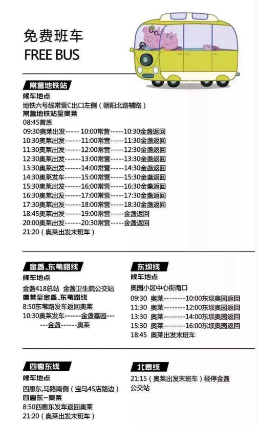 7月16日起,望京线试运行,候车地点:大西洋新城南门,10:30-18:30每两小时一班;