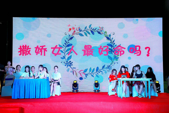 据悉,“大咖计划 足球宝贝”由长沙源亚传播主办,魔镜魔镜,中文传媒,星米策划承办,为的是选拔主持星秀。当天的总决赛分为“团体舞蹈”“辩论赛”“助演嘉宾帮帮忙”“即兴主持”共四个环节,整场比赛高潮迭起,趣味不断。特别是在辩论赛环节中,12组选手围绕“撒娇女人最好命吗?”为辩题辩论,正反双方唇枪舌剑,不断交锋,不时有选手爆出金句,现场观众看的也是津津有味。