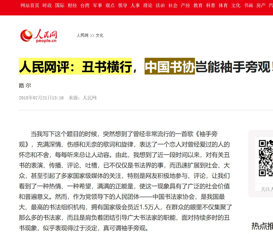 以下为人民网刊发的对中国书法家协会批评的评论文章原文: