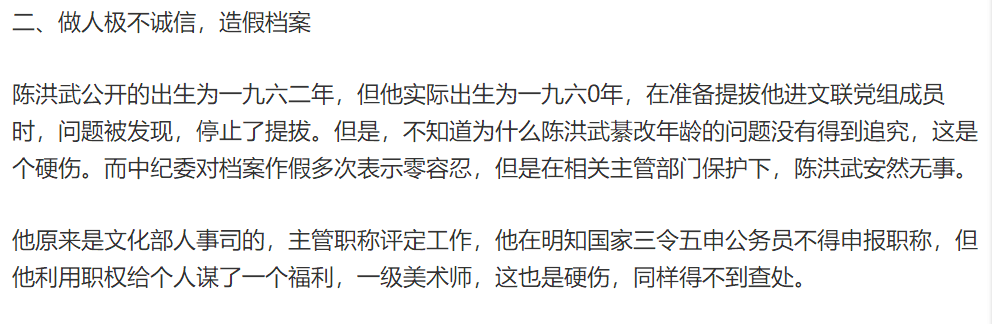 该部分指责陈洪武档案造假、做人不诚信(帖文截图)