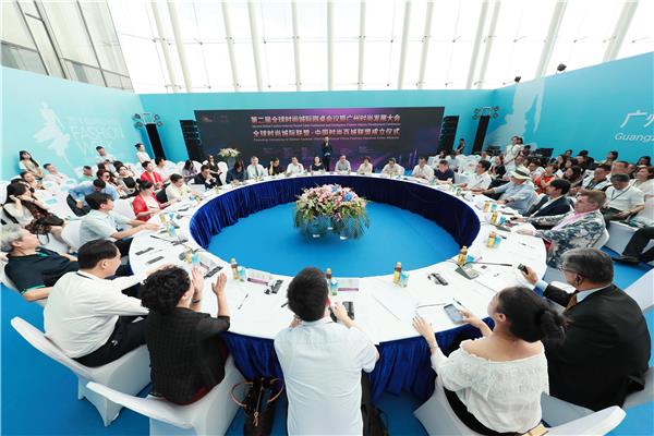 本次会议,由广州市人民政府、中国纺织工业联合会指导,广州市商务委员会、广州市协作办公室、广州市人民政府新闻办公室、海珠区人民政府共同支持,全球原创设计联盟、广州时尚周组委会、纽约时装周组委会、 广州广播电视台、教育部高等学校纺织类专业教学指导委员会主办。会议以“时尚科技新时代,美好生活领全球”为主题,启用无水印染绿色时尚科技重器,集结全球时尚绿色革命精锐力量,共同建立行稳致远的两大合作联盟——全球时尚城际联盟、中国时尚百城联盟,提速时尚产业可持续发展进程,打造绿色时尚世界共同体,给予美好生活与青山绿水一举两得的广州方案。