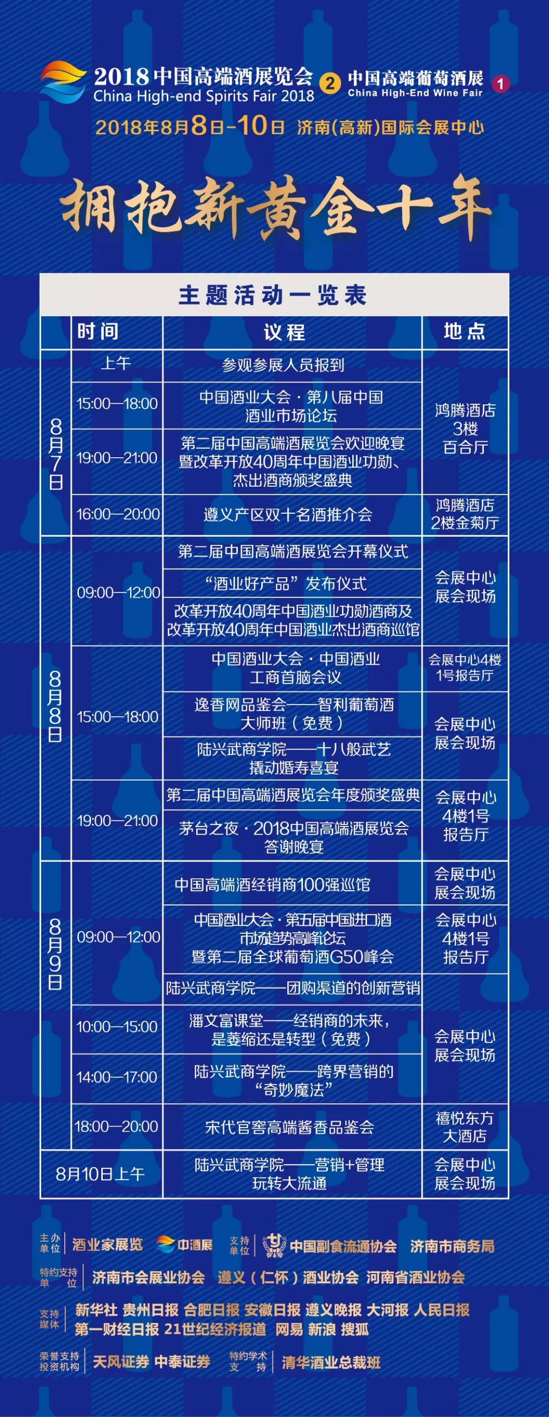 同时,2018中国高端酒展览会的同期活动非常精彩,三大论坛涵盖白酒与进口酒;有遵义双十名酒推荐会为经销商带来赤水河畔的酱香美酒;有潘文富课堂、陆兴武商学院等丰富多彩的论坛为经销商答疑解惑,传授真知。
