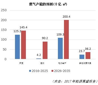 据工商部的预测,在2016-2025年间越南国内燃气总产能达 1252亿m3 。在2026-2035年间,燃气开发总量涨至1454亿m3,较前个阶段涨16%。
