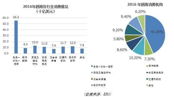 目前越南经济正处于稳定状态,重要货物价格小幅上涨,中产阶层人数规模不断扩大,赴越的国际游客日益增多,越南融入世界程度也尤为深广。这些利好条件将为越南食品饮料业的发展前景奠定牢固基础,助其至2019年的年复合增长率仍继续保持两位数增长。根据BMI Research市场研究公司的预计,越南食品饮料业年复合增长率将在2017-2019年期间保持10.9%。另外,BMI还预期越南乳业增长10%左右,酒精饮料增长11.1%,消费者需求将集中在食品和必需品上。
