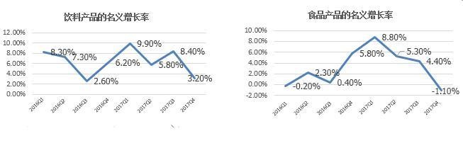在2013-2015年阶段,食品、饮料和烟草的消费增长率从2013年的0.8%升至2015年的3.8%。在2016-2017年两年之内,该增长率继续上升至4%。