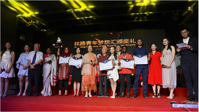 相聚一带一路,放飞青春梦想。首届“丝路青年梦想汇”活动于2018年8月14日在北京圆满落幕。自8月12日在北京师范大学英东会堂正式启程,来自26国近百名年轻选手在这里通过演讲、摄影、音乐三个环节的赛事展开了交流,8月13日晚间,这把青春之火又延续到了北京798当代艺术区的“机遇空间”,这里高朋满座、人声鼎沸,伴随着首届参赛选手在活动期间共同完成的“丝路青年梦想汇”主题曲《Silk Road & Young Dreams》的活泼动律,首届“丝路青年梦想汇”颁奖晚会拉开了帷幕。