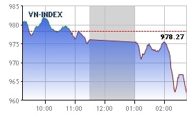 越南股市经过几个交易日震荡和反弹之后,今天午盘时,两市指数由于受到抛售压力的打击而大幅下滑。 油气股价一律走软,PVC、PVD、 PVS等股票纷纷跌停。越南油气(GAS)大跌6.1%至9.5万越盾/股;越南石油集团(PLX)下跌4.3%至6.28万越盾/股。
