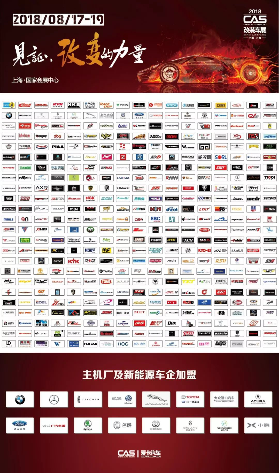 2018我们继续保持高质量的参展品牌,近400多个一线改装品牌持续参展,其中不乏有BILSTEIN、EIBACH、DIXCEL、Brembo 、KYB、HKS、TEIN、HAWK、RACE CHIP、DarwinPRO、趴趴派客、车网联盟、雅泛迪、耐特通、等国际一线改装品牌。