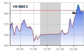 与昨日的行情相反,越南指数今日呈现强势回升势头。其中,油气板块昨天和今天早盘受到抛售压力的打击之后,收盘时却良好收涨。PVS、PVC、PVB、PLX等股票的涨幅分别为2.1%、6.3%、3,7% 、2.9%。越南油气(GAS) 仅微跌0.5%至9.45万越盾/股。恢复走势还蔓延至银行板块。BID、 CTG、 HDB、MBB、 TPB等股票均走强。BID、CTG、MBB等股票的涨幅分别为2.4%、3.8%和1.7%。VCB、TCB、STB和VPB保持昨收价。
