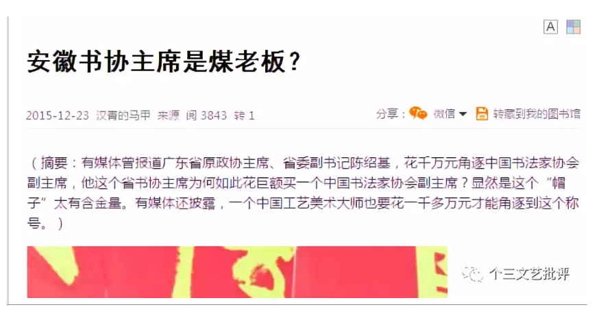 ▲发表《安徽书协主席是煤老板》(截图)