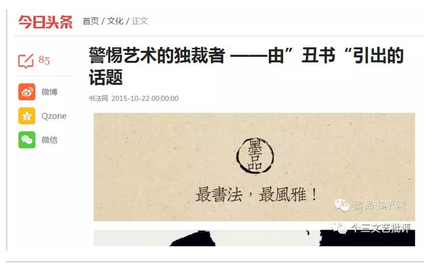 ▲发表《警惕艺术的独裁者 ——由”丑书“引出的话题》(截图)