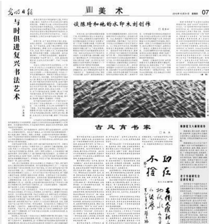 ▲10月31日,在《光明日报》07版上发表《与时俱进复兴书法艺术》(截图)