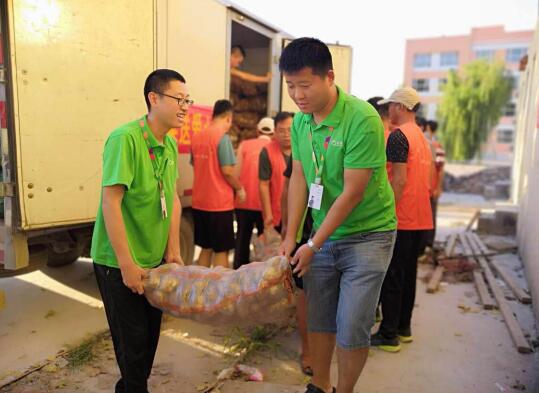 洪涝灾害造成农田、大棚减产,导致灾区粮食、蔬菜紧缺。在了解情况后,美菜网青岛政委王春燕发动员工积极联系政府部门,给多处灾民安置点及武警战士提供后勤保障工作,捐赠土豆3200斤、甘蓝2000斤、南瓜2000斤、矿泉水100箱、面粉100袋、挂面2500把、大米1500斤、油100桶。