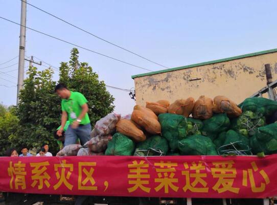 8月26日中午,美菜网青岛子公司筹集的蔬菜、大米、面粉、矿泉水等救灾物资由青岛出发,于当日下午送达寿光市上口镇物资接收站。