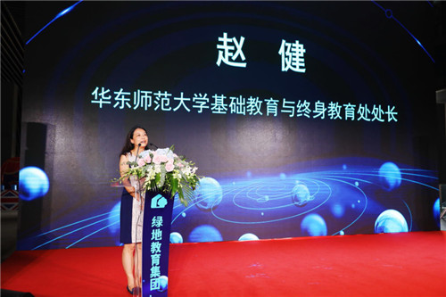 启动仪式:从左至右:徐汇区妇联副主席邵微琼徐汇区妇联主席万小岚绿地集团执行副总裁、绿地教育集团董事长耿靖华东师范大学基础教育与终身教育处处长赵健华东师范大学学前教育系主任张明红