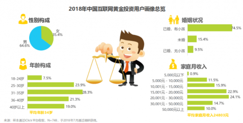 数据显示,目前互联网黄金投资用户中男性占比较高,平均年龄34岁,且已婚已育,是社会的中坚力量。用户整体投资互联网黄金的平均时长约14个月,其中重度用户投资互联网黄金的平均时长接近17个月,在各类互联网金融产品中居于前列。据黄金钱包方面提供数据显示,该平台用户粘性较强,平均投资金重亦在行业中遥遥领先,充分体现了投资者对互联网黄金的信心。