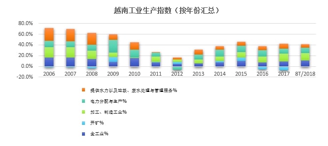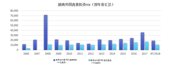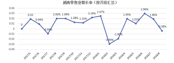 2018年前8月,越南经济取得诸多积极进展,如宏观经济稳定发展、通胀率与居民消费价格指数得到控制、外国直接投资强劲流入越南市场等。