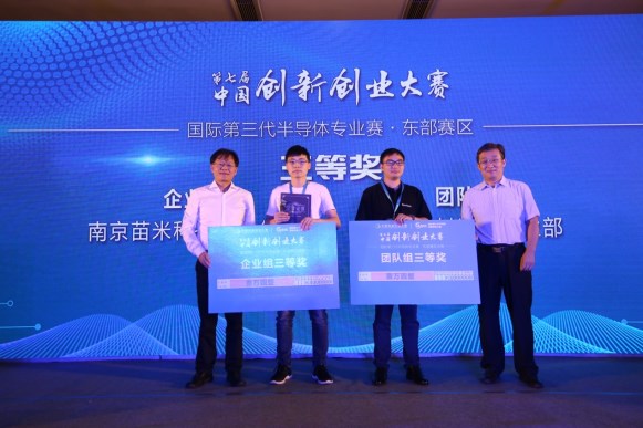 本次大赛采用“10+5”模式进行,即参赛选手依次进行10分钟项目路演,由产业专家和投资人组成的评委团对选手的技术和产品、商业模式及实施方案、行业及市场、团队、财务分析等方面进行提问、评价打分。最终苏州锴威特半导体有限公司喜获企业组一等奖、张家港意发功率半导体有限公司喜获企业组二等奖、南京苗米科技有限公司喜获企业组 三等奖,祝晓钊团队、中科院半导体所滤波器团队、微纳增材制造事业部分别获得团队组一、二、三等奖,大赛组委会在9月7日上午举行了隆重的颁奖典礼,张家港市政府、张家港高新区、第三代半导体产业技术创新战略联盟等领导为获奖选手颁发了证书、奖杯以及奖金。