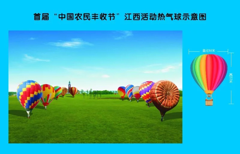 活动现场将会有十个热气球腾空而起,在专业人士操控下,从空中宣传展示江西现代农业成就,见证江西农业大丰收。这也是唯一一个俯瞰活动现场的形式,它将从另一个视角向全省观众呈现活动全貌。