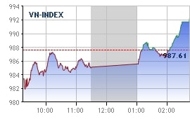 中小股板块:上涨态势在该板块中占上风,NVL、 HBC、FLC、 DXG、SCR、DIG、NLG、LDG等房地产、建筑股票全线出击。其中,和平房地产建筑 (HBC) 大涨4.8%至2.38万越盾/股,成交500万股。