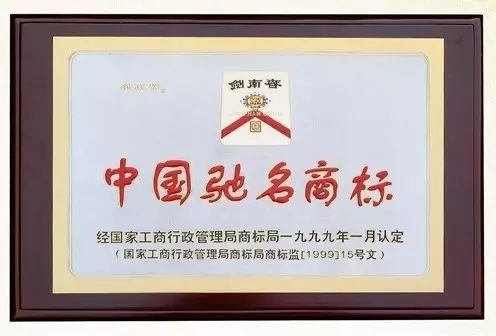1999年剑南春被国家工商总局认定为“中国驰名商标”。《驰名商标认定和保护规定》中指出:驰名商标就是指在中国为相关公众广为知晓并享有较高声誉的商标。