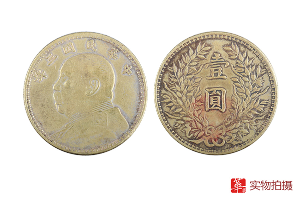 近日,广州华逸有幸征集到一枚袁大头三年版本,直径:3.9cm。钱币正面中间为袁世凯戎装左侧面像,民国3年(1914年)版的上方为“中华民国三年”字样,背面图案是两株交叉的稻穗,中央为“壹圆”字样。该币的外环主要是直齿边,另外,还铸有少量工字边和花齿边。它即使是“百年高龄”,但是仍然保存完整,品相较好,是一枚具有很高收藏价值的精品银元,其未来价值的升值无可限量。