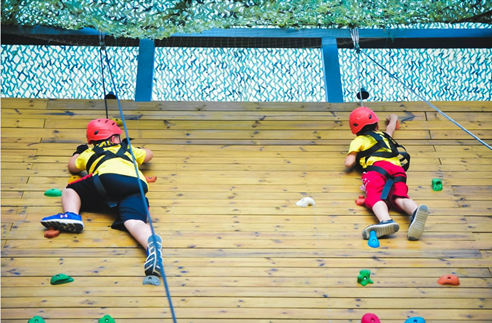两条总长度400米的丛林穿越路线,造价高达百万人民币,各有12关卡,成人初次体验也需半小时才完成。孩子更得克服对悬在高空的心理恐惧,通过攀爬、平衡,想方设法到达终点。