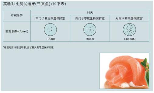 西门子冰箱的零度生物保鲜室此前也以零度保鲜下的三文鱼与普通冰箱保鲜的三文鱼进行了菌落数的对比。14天后,西门子冰箱两个保鲜室1万和3万菌落远低于对比冰箱的140万菌落验证了其控制细菌繁殖的保鲜力。