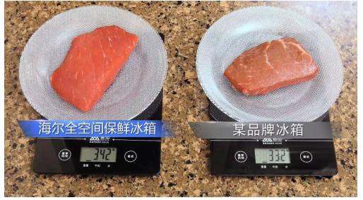 海尔则以全空间保鲜冰箱的智能恒温冷冻技术进行了三文鱼保鲜挑战,经其的三文鱼纹路依然清晰、色泽较为明亮,汁液流失率可比竞品冰箱少损失64%。经过7天挑战,三文鱼在全空间保鲜冰箱内整体保鲜效果较佳。