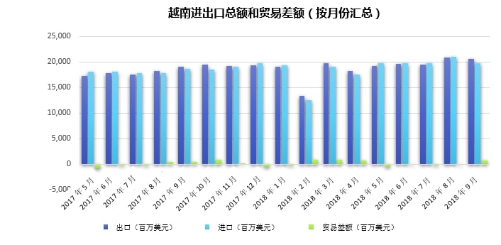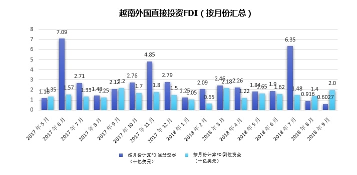 2018年前9月,越南经济继续取得诸多积极亮点:国内生产总值(GDP)和工业生产指数创自2011年以来历史新高、贸易顺差达到新记录54亿美元、通胀率得到控制等。