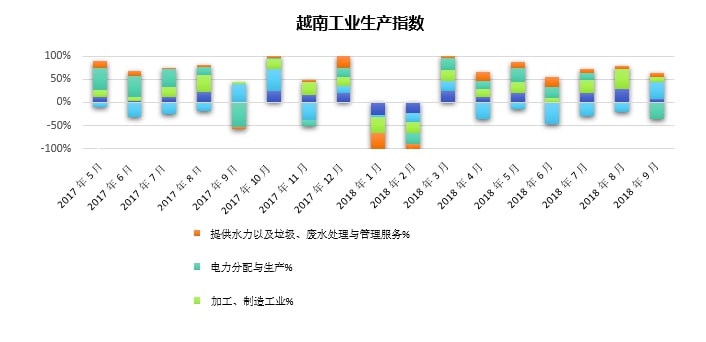 工业生产指数继续保持高位增长势头,同比增长10.6%,其中凭借福尔摩沙集团的贡献,越南河静省的工业生产指数增长率高达110.4%。