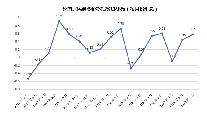 其一,通胀压力正在增加。9月份,越南CPI环比增长0.59%。2018年第三季度,越南CPI同比增长4.14%和较上个季度增长0.72%。前9月,CPI同比增长3.57%。该增加主要来源于教育服务增长5.7%,尤其是石油价格的上涨。越南政府一直努力控制CPI保持在4%以下,其中石油价格得到灵活调整。尽管石油价格上涨影响到CPI指数,但2018年越南政府将通过适当使用石油价格稳定基金来有效控制通胀的增长,从而有助于最大限度限制该产品价格的上涨对CPI所造成的影响。