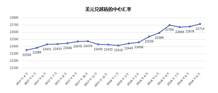 其二是汇率压力的问题。近几个月美元价格的上涨趋势一直是全球金融市场的热点,尤其是于2018年9月26日,美联储加息0.25%至2.25%,导致许多货币贬值,其中包括越南盾在内。自年初至今,越盾兑美元的实际交易汇率贬值超过2.7%。与此同时,中美贸易紧张形势使人民币贬值,其也大大影响到越南盾兑美元的汇率。然而,诸多专家认为越南盾汇率相当稳定,其正波动在1%区间。此外,专家们认为影响到汇率的市场因素是先有预料的。由于越南央行已早提出具体政策来应对汇率波动风险的问题,因此,其难以对越南市场造成太大冲击。目前,越南外汇储备达到新记录635亿美元,有助于越南央行在汇率发生较大波动时仍能轻松调节市场。例如,当汇率在今年7月份发生波动时,越南央行已及时净卖出25亿美元,促使市场情绪快速得到舒缓。