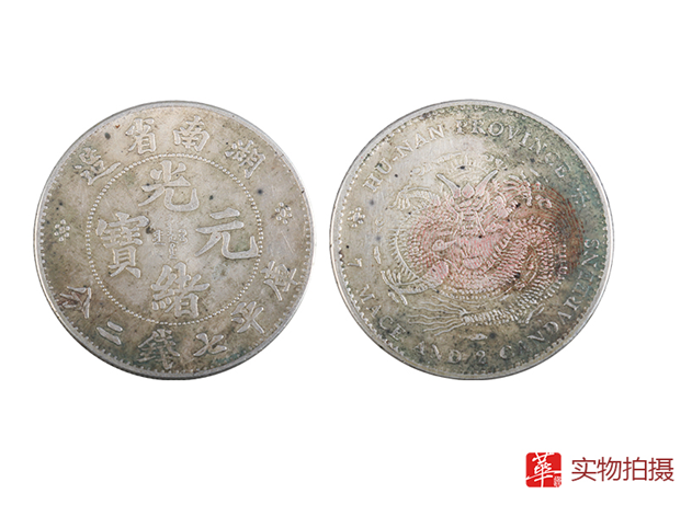 广州华逸征集此枚“湖南省造”光绪元宝,钱币正面珠圈内铸汉文“光绪元宝”四字,上环为“湖南省造”,下环为“库平七钱二分”,元宝包浆自然,历史留下的痕迹清晰可见,藏品在柔和的光线下散发出一种淡淡的灵气,收藏价值较高。