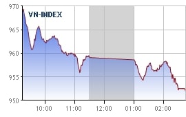 今日,越南股市行情较为暗淡,甚至尾盘时,空头卖压强劲放大,促使两市指数趋于下降。空头势力蔓延至许多板块,其中,大盘股板块强势下滑,对市场造成重大压力。值得注意的是,Vinhomes股份公司 (VHM)大跌5.1%至7.31万越盾/股;Masan 集团 (MSN) 下跌3.4%至7.85万越盾/股;VRE、PNJ和VNM的跌幅分别为3.3%、3.1%和2.2%。
