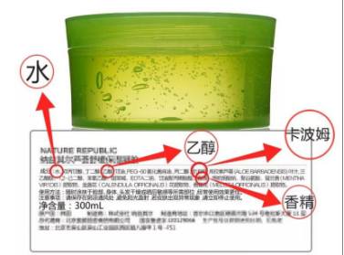 这个是某知名韩国芦荟胶成份,排在第一位是水,成份相对复杂