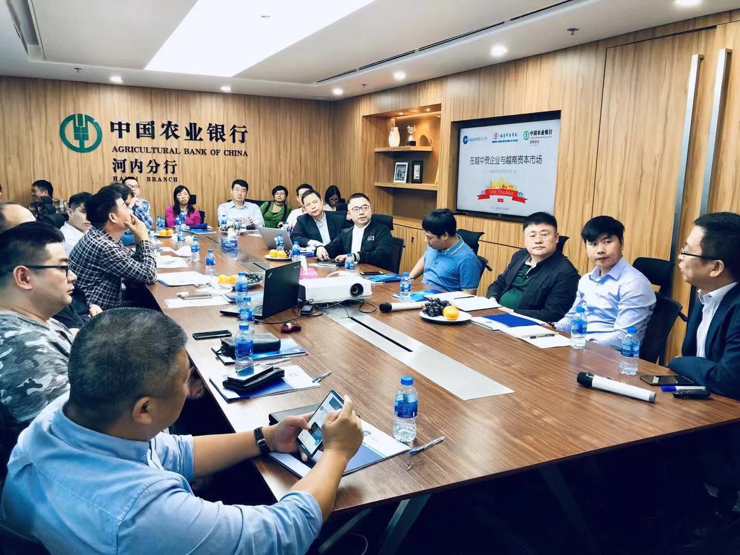 10月20日下午,由越南建设证券联合越南中国商会组织、中国农业银行河内分行共同承办的《在越中资企业投资沙龙》第一期在农业银行河内分行成功举行,30余名越南中国商会会员到场参与,聆听商会领导和专业人士的知识分享。