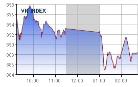 今日越南股市两市指数继续下调,是连续第8个交易日收跌。值得注意的是,越南指数再次趋于885点,即7月份的底部。市场流动性仍处于较低水平,证明目前投资者保持谨慎,并未出现买入信号。