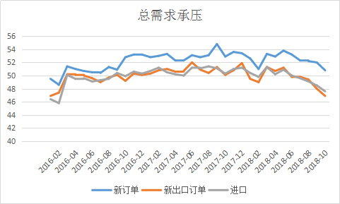 2. 制造业生产指数扩张加速放缓。10月PMI生产指数为52.0,下降了1个百分点,而9月下降仅仅为0.3个百分点。主要原因是,目前总需求低迷,其压力从消费端传导至生产端,而且成品库存指数最近四个月一直处于47左右,去库存的压力较大。