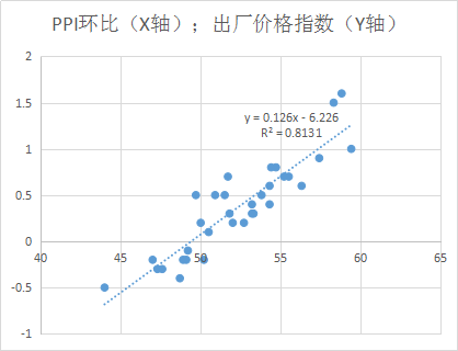 表 2:环比PPI与出厂价格的线性回归 数据来源:顶点财经