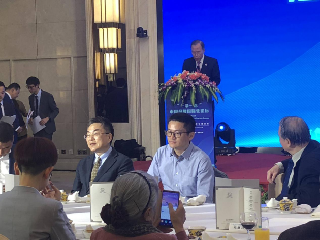 图为:一带一路”中国品牌国际化论坛中,联合国第八届秘书长、博鳌亚洲论坛理事长潘基文先生致辞