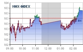 与上周最后交易日的行情完全相反,今日越到尾盘时,市场行情越积极。 在空头势力趋弱的同时,买方也逐渐接受较高的价格,市场因此反转微涨。诸多大盘股尾盘时逆转走强,有助于拉升市场各指数高于上周最后交易日的收盘价。值得注意的是,油气和水产品板块中,个股涨势如潮。油气龙头股今天强势上涨,越南油气 (GAS)上涨1.7%至9.68万越盾/股;越南石油技术业务 (PVS)上涨6.2%至1.89万越盾/股,成交580万股;石油钻井业务 (PVD) 上涨3.8%至1.63万越盾/股,成交330万股;PLX、PVB、PVC的涨幅分别为1.4%、3.4%、8.3%。