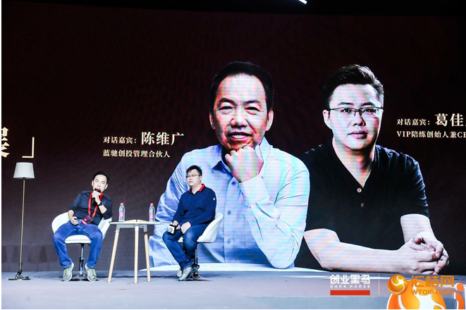 会上,天使轮投资人——蓝驰创投管理合伙人陈维广与VIP陪练创始人兼CEO葛佳麒的精彩对话以及对VIP陪练发展的经验分享,无疑给无数创业者们提供了参考。