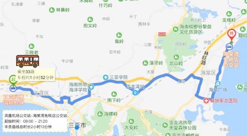 直接到达三亚凤凰国际机场的Raver可在凤凰机场公交站曾作公交车,直接到达海棠湾免税店公交站,到达线路时长大约2小时13分钟,公交车起始时间在早8点至晚9点20。
