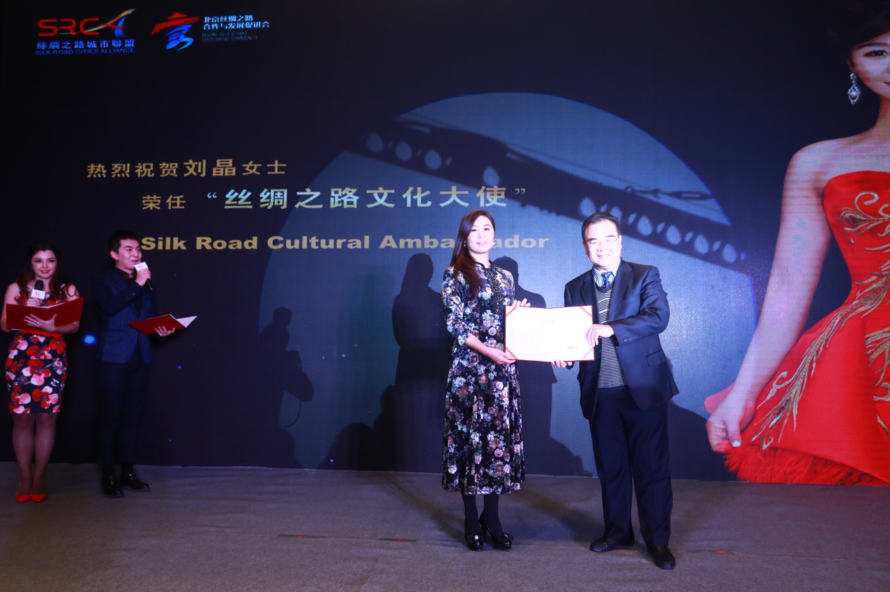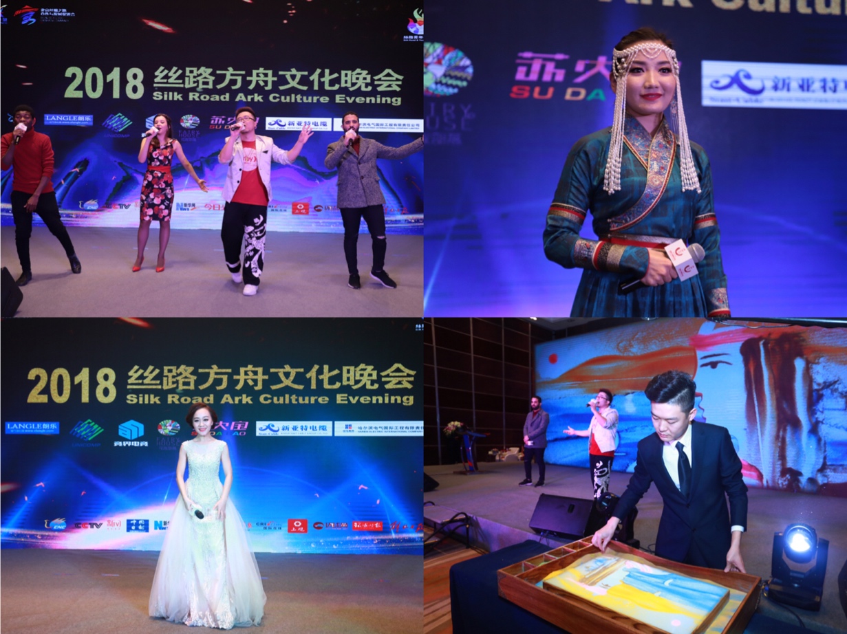 当晚丝绸之路城市联盟高级顾问、中国驻奥地利前大使卢永华向第一届丝路青年梦想汇代言人、音乐组比赛评委青年歌唱家刘晶颁发“丝绸之路文化合作大使”证书,不仅表彰她之前为丝路青年交流所做的工作,更期待她今后在丝路沿线青年文化交流合作上多做贡献。刘晶是全总文工团独唱演员,毕业于中国音乐学院,多次参加欢乐中国行、中华情、激情广场等大型晚会和栏目。代表作有:《火火的中国》、《飞天神韵》、《亲爱的中国》等。当晚参加演出节目中,开场曲《丝路Young Deams》是由第一届丝路青年梦想汇音乐组二等奖获得者九星作词、作曲,同时他还是“丝路青年音乐联盟”联合发起人。除此之外,中国名曲《高山流水》是由第一届丝路青年梦想汇音乐组一等奖获得者李洋演唱;蒙语歌曲《海市蜃楼》由2018北大留学生十佳歌手冠军扎布哈演绎,这两首代表了各自浓浓民族风情的歌曲倍受嘉宾青睐。而另一曲由丝路青年音乐联盟原创的中阿语歌曲《尼罗河水》,当晚还邀请了青年沙画家熊林联袂演出,为在场嘉宾献呈了一场音乐与沙画相交辉映的视听享受,博得好評。